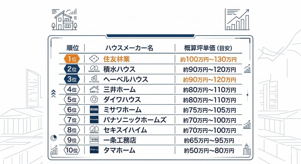 まずは、皆さんが一番知りたいであろう、2026年最新版の大手ハウスメーカー坪単価ランキングTOP10を一挙に発表します!